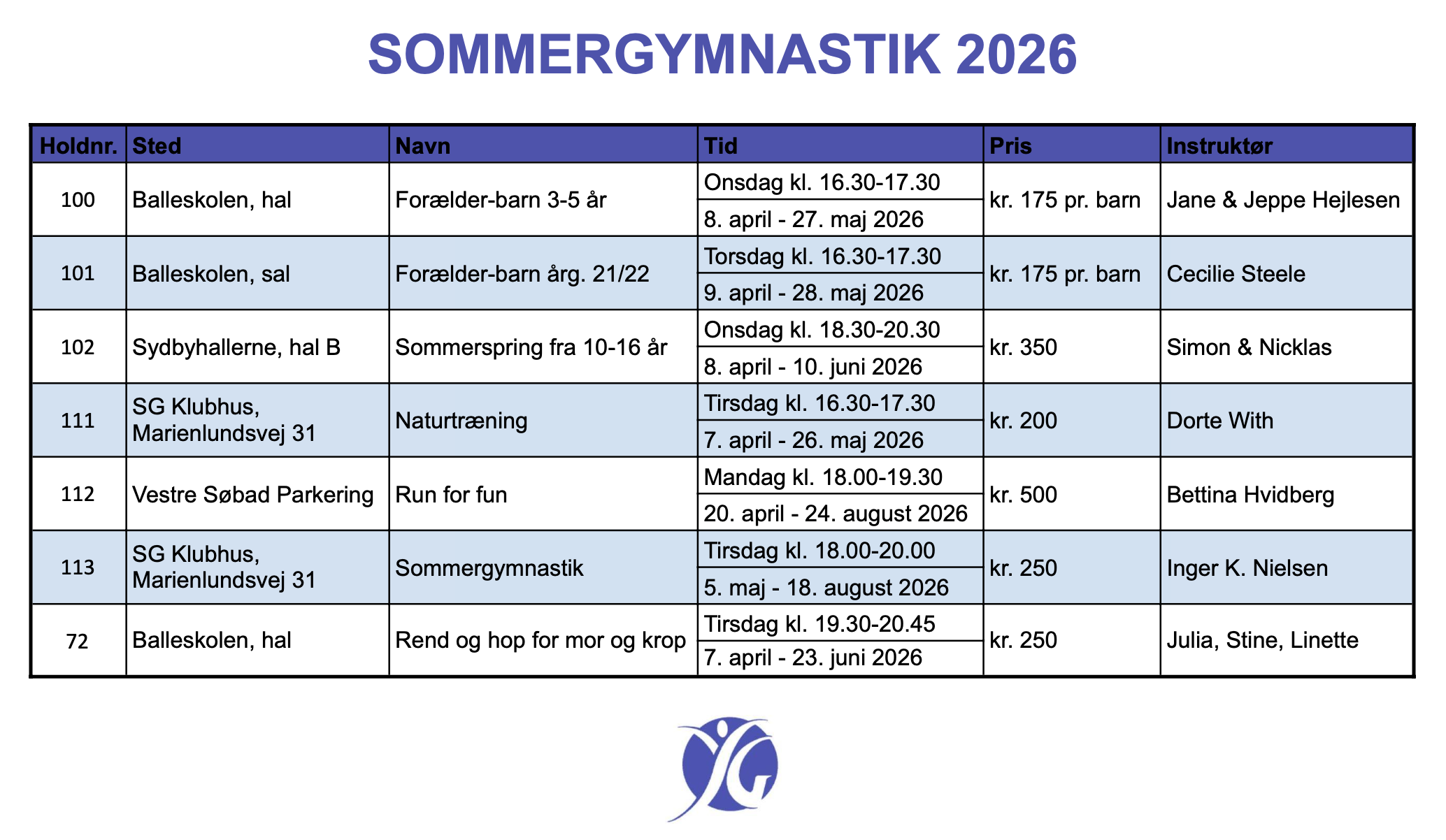 Tilmelding på www.sgf.dk - Hold 2025/26 - Sommersæson 2026 eller på holdsport appen.